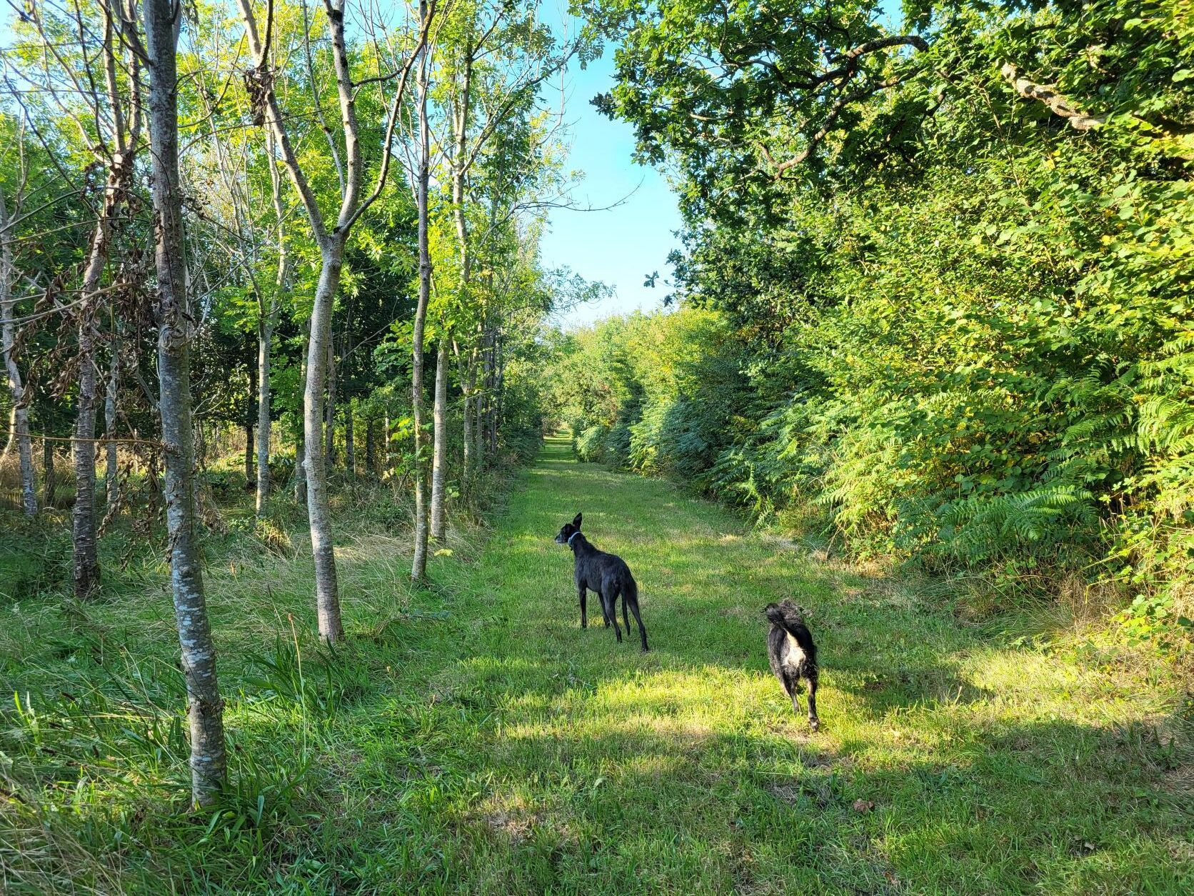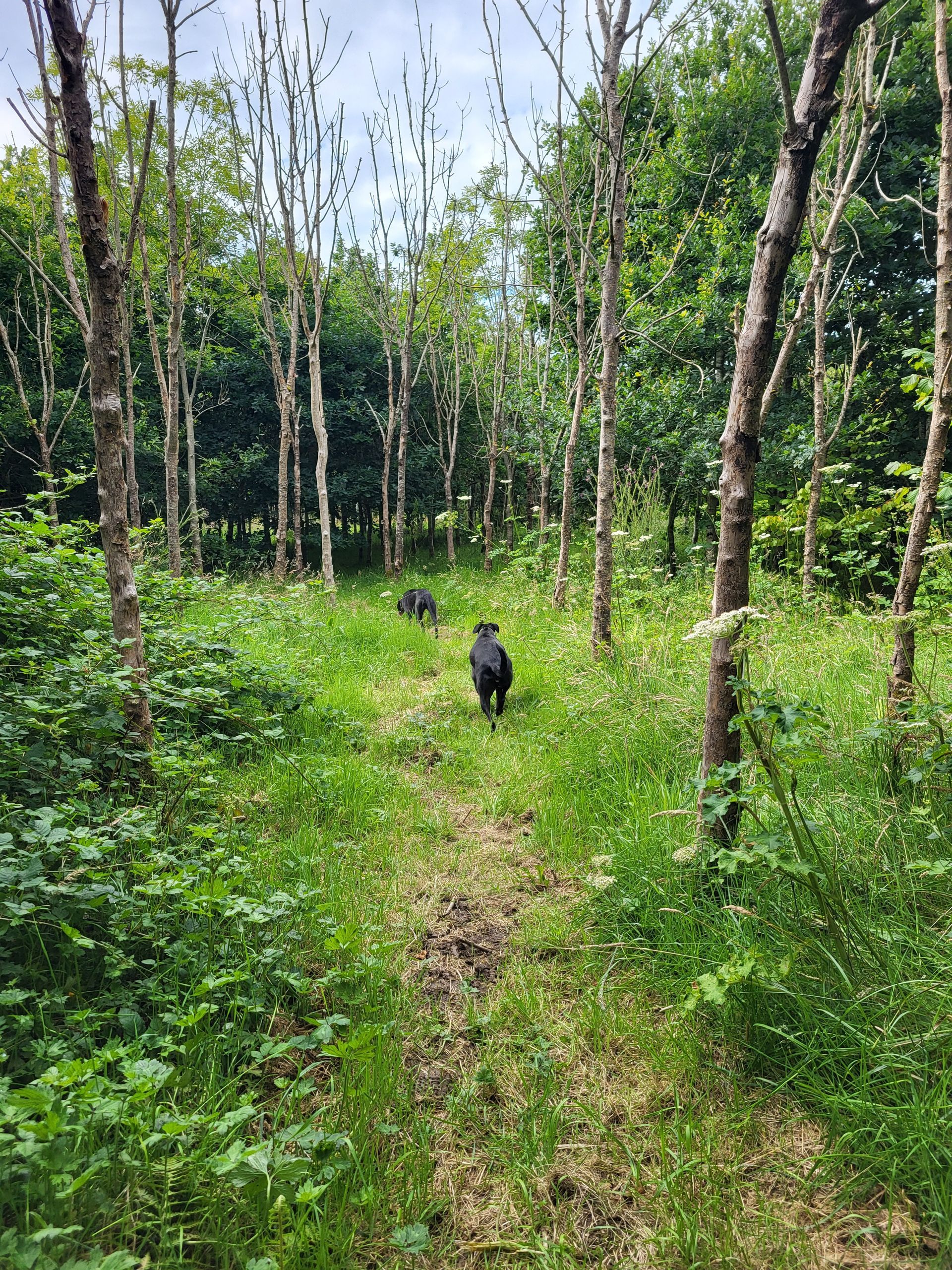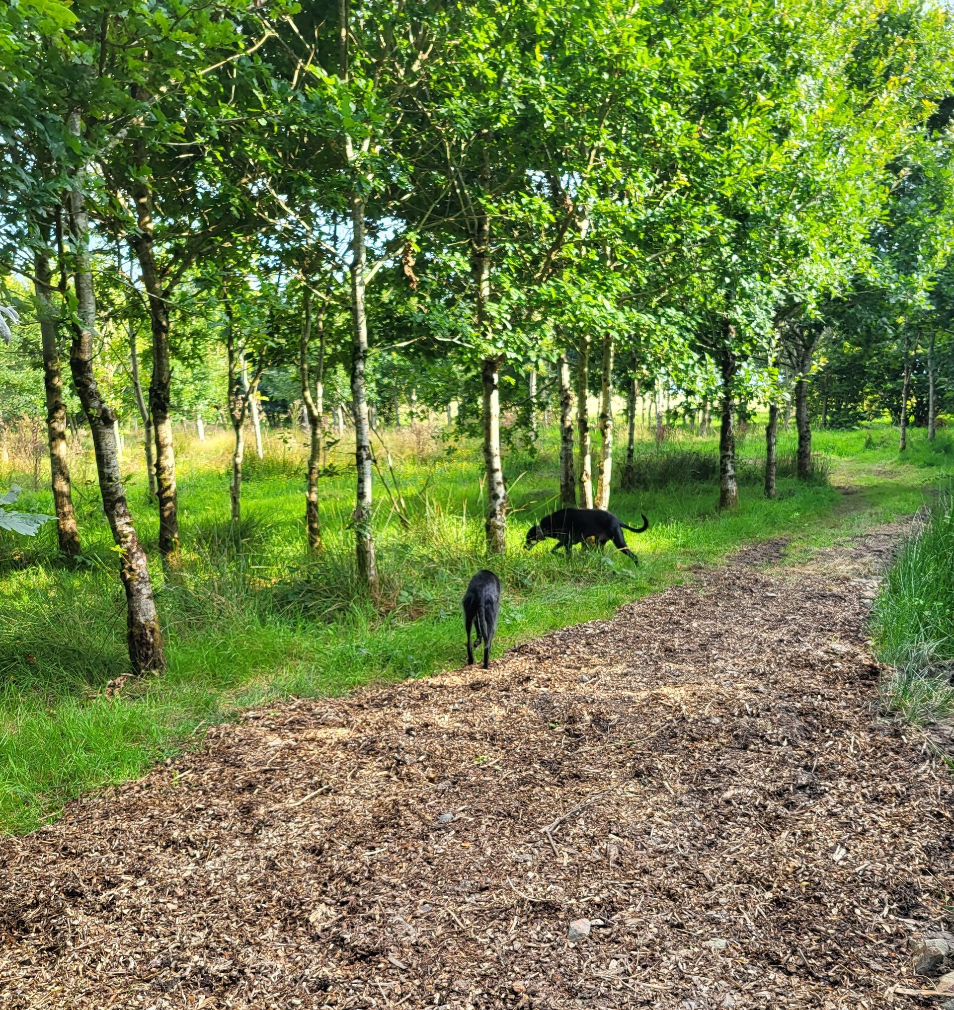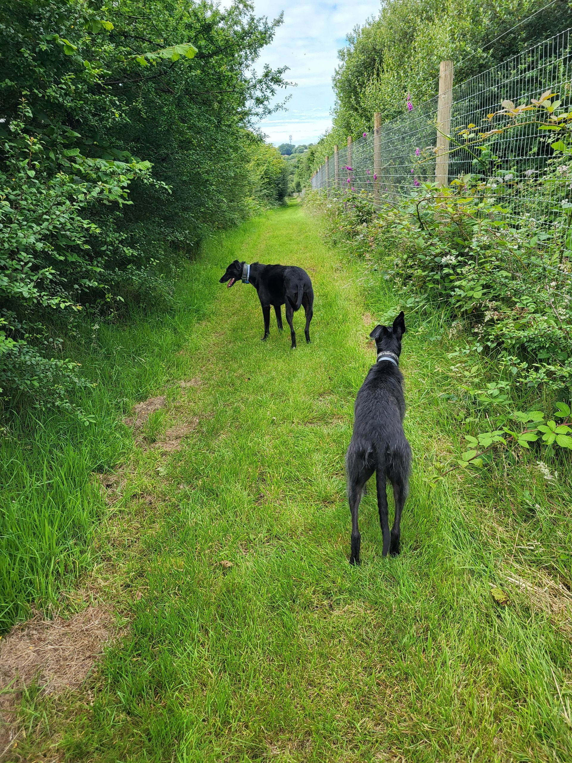 The perimeter is enclosed by Tornado Dog Fencing: 6ft, small hole/high tensile wire, most of which also has an additional top wire making it over 6ft high. The internal area is subdivided into smaller fenced/gated sections so you can keep track of your dogs, with the fenced woodland located in the centre. A small section to the side of one track has dense hedgerow and trees, the fencing in this section is 5.2ft however it has hedge/trees directly behind it creating a 10ft + 'wall'. Visiting owners, even with the most reactive or flight risk dogs, have never found this to be an issue, so unless your dog is likely to jump head first into a tree then this should not pose an problem.