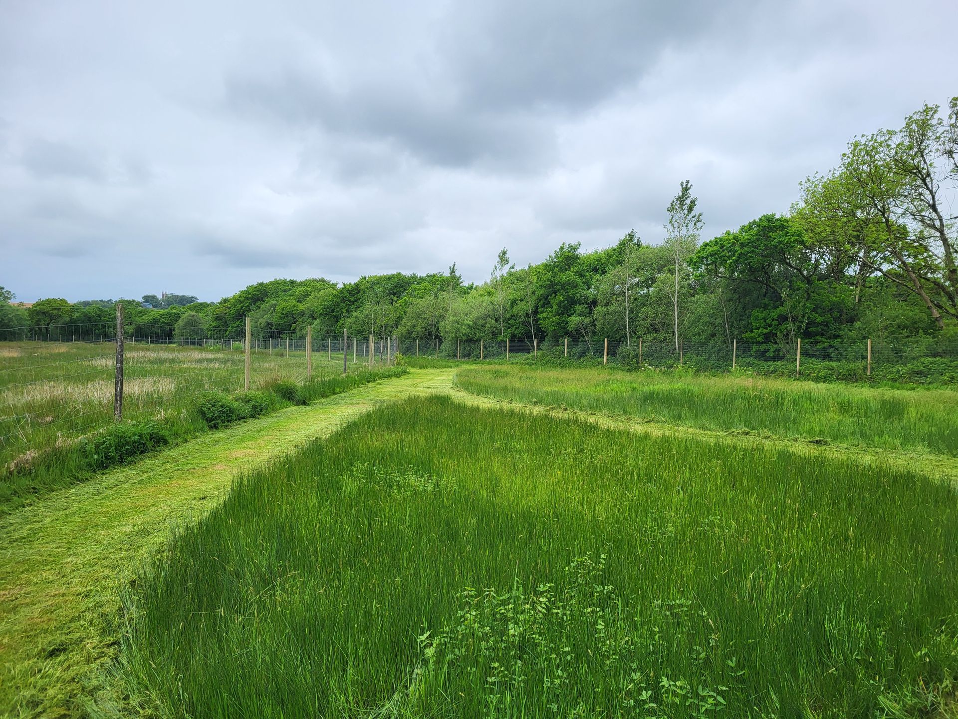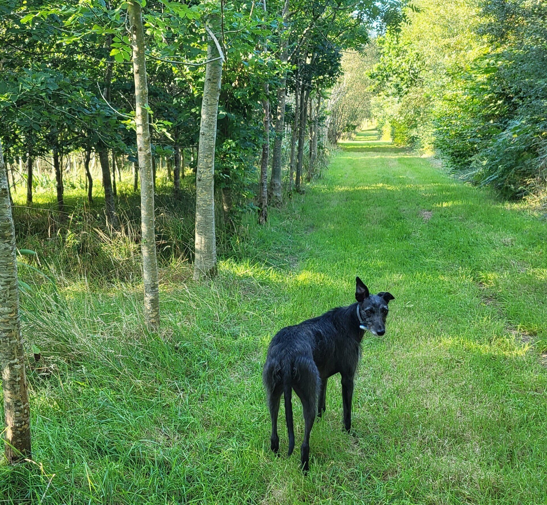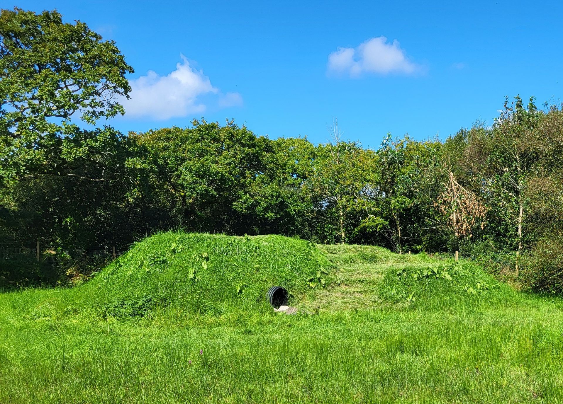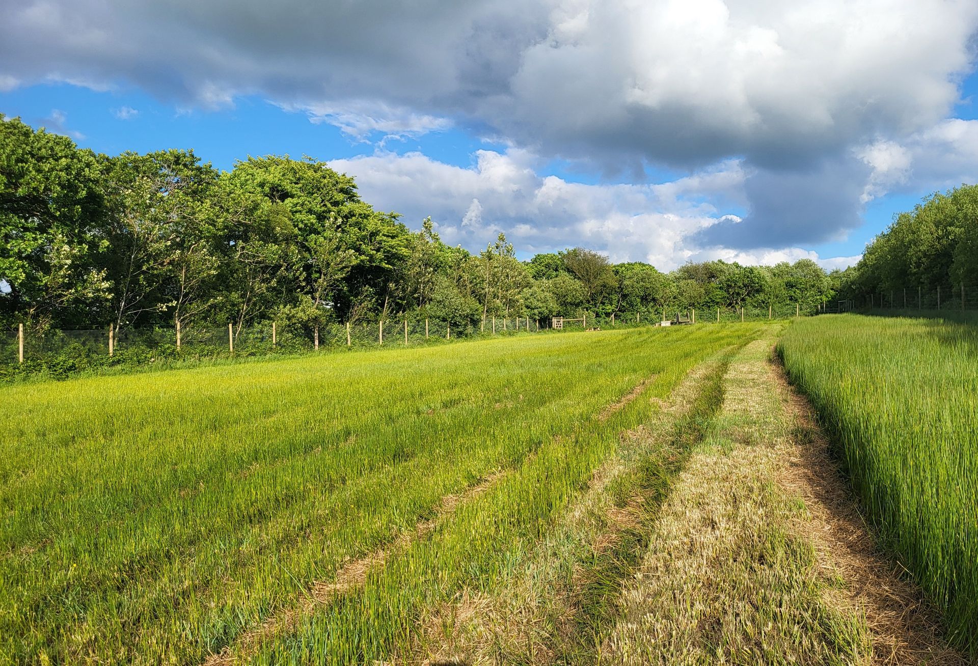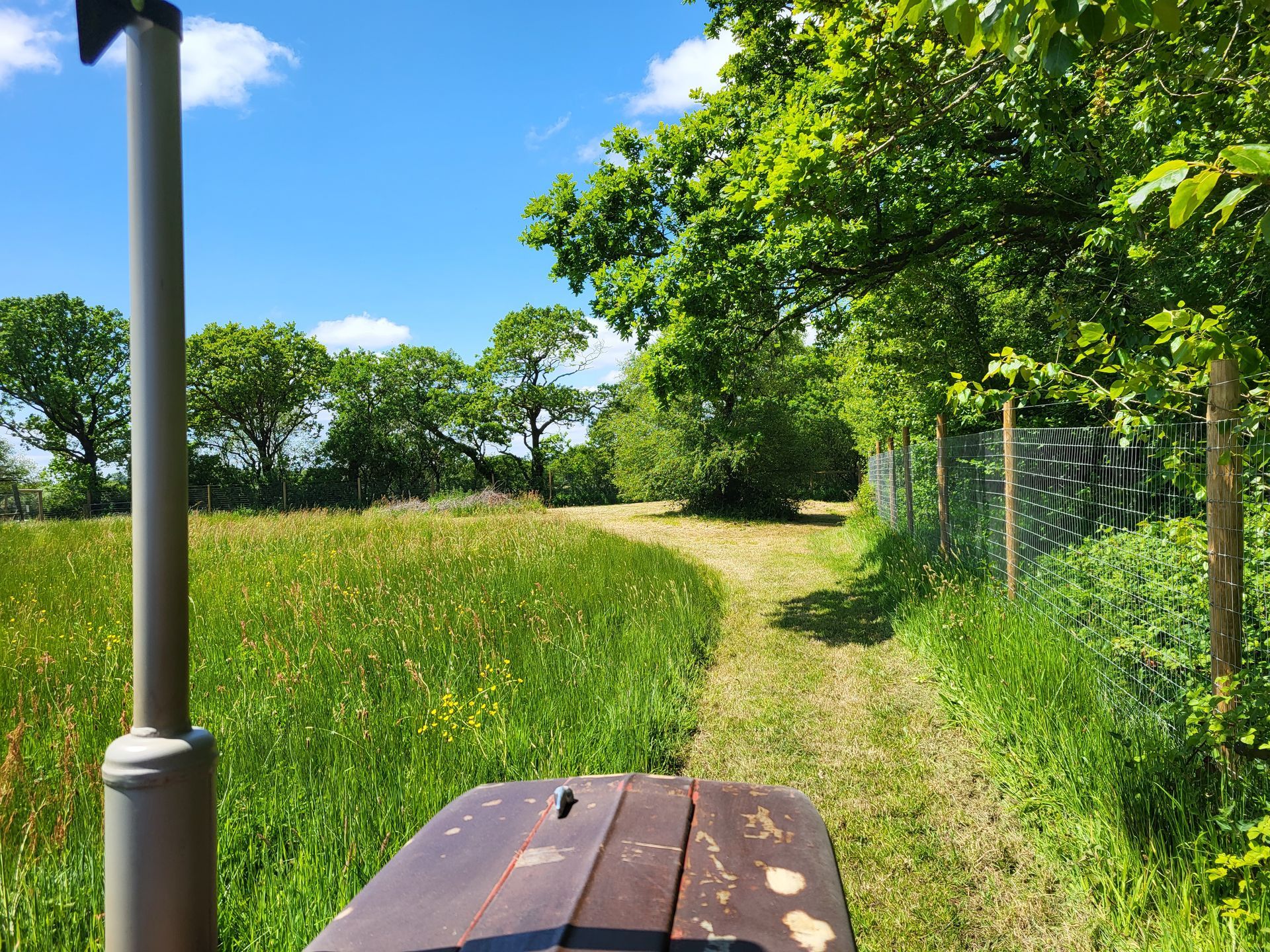 The perimeter is enclosed by Tornado Dog Fencing: 6ft, small hole/high tensile wire, most of which also has an additional top wire making it over 6ft high. The internal area is subdivided into smaller fenced/gated sections so you can keep track of your dogs, with the fenced woodland located in the centre. A small section to the side of one track has dense hedgerow and trees, the fencing in this section is 5.2ft however it has hedge/trees directly behind it creating a 10ft + 'wall'. Visiting owners, even with the most reactive or flight risk dogs, have never found this to be an issue, so unless your dog is likely to jump head first into a tree then this should not pose an problem.